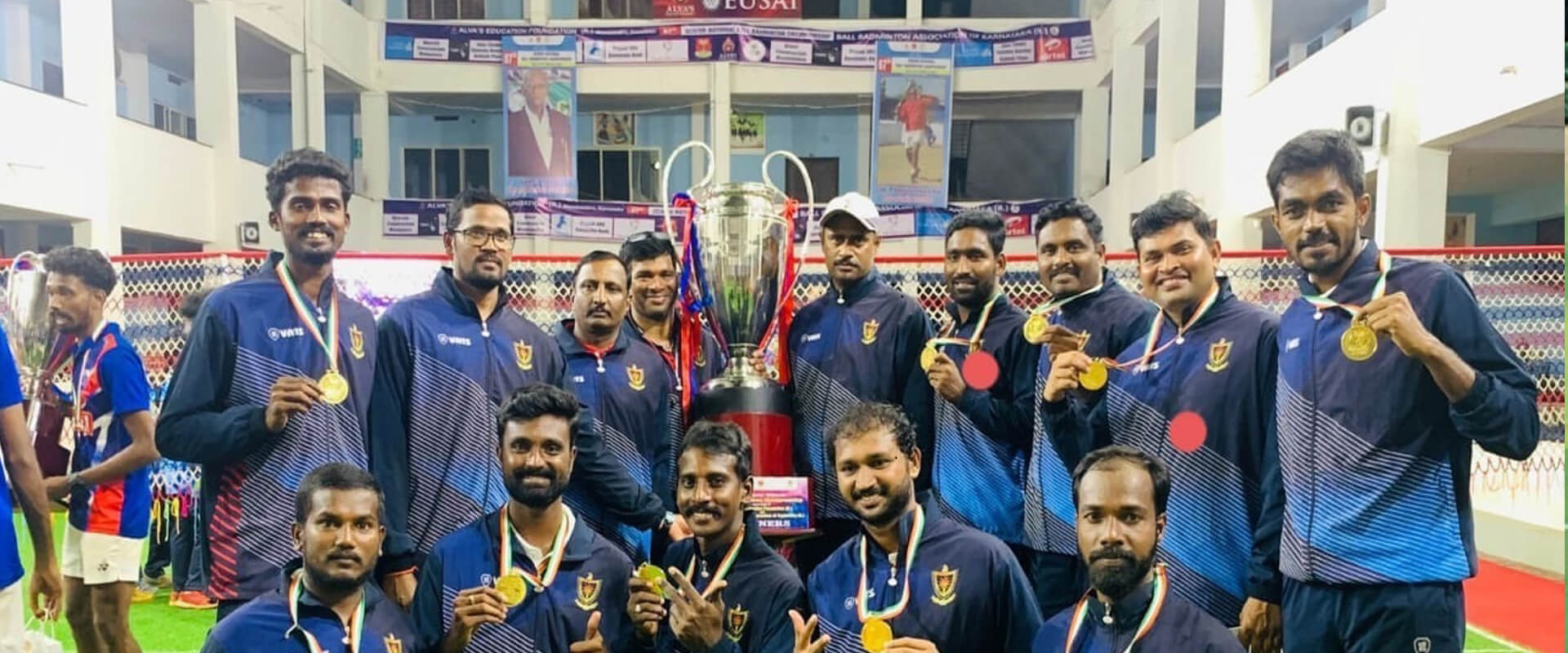 Shri D V Ganesh , Shri Vegal Rao and Shri B Ramgopal Rao ECoR Ball badminton player and coach has secure Gold medal in Sr National Ball badminton championship 28.12.2023 at Kerla.